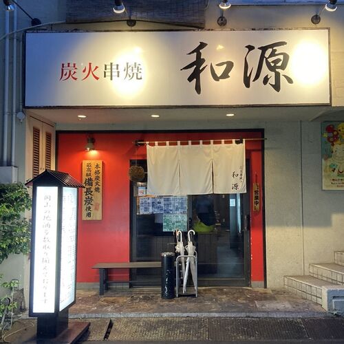 炭火串焼「和源」(かずげん) ☆☆ 岡山柳川交差点付近 天満屋と柳川交差点の中間処にある串焼店。入ると焼き場を囲むようにカウンター席があり、右側にはテーブル席が数卓あるというコンパクトなレイアウトです。串メニューは、牛・豚・鶏の各部位から選ぶこ…